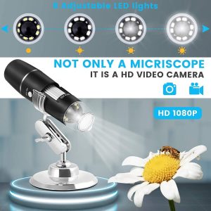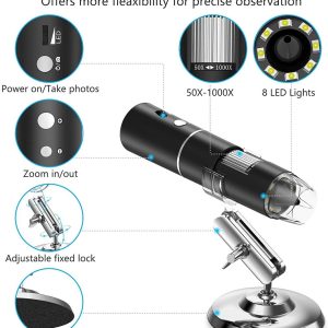 Microscopio digital inalámbrico de mano USB HD Cámara de inspección 50x-1000x Ampliación con soporte Compatible con iPhone, iPad, Samsung Galaxy, Android, Mac, computadora con Windows