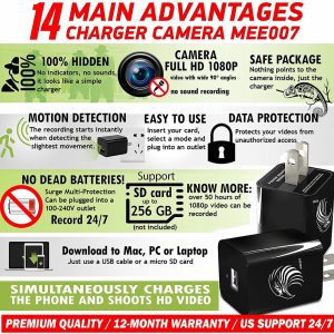 Mini cámara espía 1080P cámara oculta – Cámara portátil pequeña HD para niñera con visión nocturna y detección de movimiento – Cámara de seguridad encubierta interior para el Home & Kitchen y la oficina – Cámara espía oculta – Batería integrada