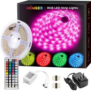 MINGER Tira de luces LED de 16.4 pies, luces LED RGB que cambian de color para el Home & Kitchen, Home & Kitchen, habitación, dormitorio, dormitorio, bar, con control remoto IR, 5050 LED, modo de bricolaje
