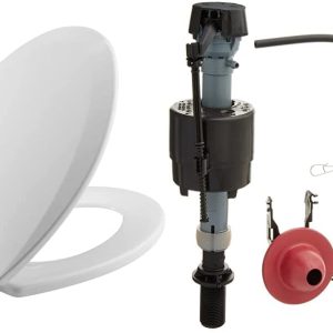 BEMIS 1500EC 390 Asiento de inodoro, algodón blanco y Fluidmaster 400CRP14 Válvula de llenado de inodoro y kit de reparación de aletas para válvulas de descarga de 2 pulgadas, fácil instalación