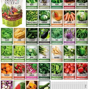Survival Vegetable Seeds Garden Kit Más de 16,000 semillas Non-GMO y Heirloom, ideal para emergencias Bugout Survival Gear 35 Variedades Semillas para plantar vegetales 35 Marcadores de plantas gratis Conceptos básicos para jardineros
