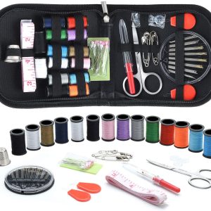 Kit de costura, suministros de costura para bricolaje con accesorios de costura, mini kit de costura portátil para principiantes, viajeros y arreglos de Apparel de emergencia, con estuche de transporte negro premium (negro)