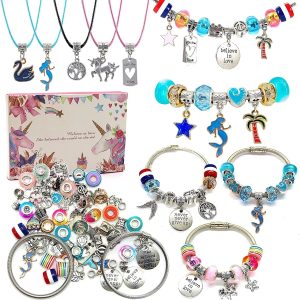 Kit para hacer pulseras con dijes, suministros para hacer joyas, cuentas, juego de regalos artesanales de unicornio/sirena para niñas y adolescentes de 8 a 12 años