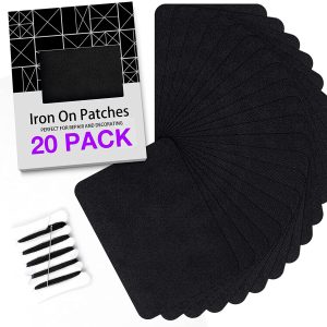 HTVRONT Parches para planchar para reparación de Apparel, parches de tela para planchar, kit de decoración de reparación de color negro clásico, 20 piezas, parche para planchar, tamaño 3,7″ x 4,9″ (9,5 cm x 12,5 cm)