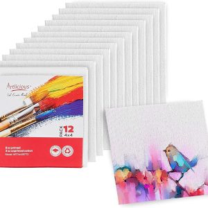 Lienzos Artlicious para pintar, paquete de 12, 4 x 4 pulgadas, lienzos blancos en blanco, paneles de arte 100% algodón para pintura al óleo, acrílico y acuarela