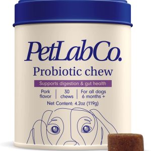 PetLab Co. Probióticos para perros | Apoye la Salud y Belleza intestinal, la picazón en la piel, las alergias estacionales y la levadura con cada masticación sabrosa | Probióticos para perros | seguro para perros pequeños y grandes | El embalaje puede variar