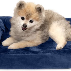 Furhaven Camas ortopédicas, de gel refrigerante y de espuma viscoelástica para perros y gatos pequeños, medianos y grandes – Diván en L de dos tonos, sofá Kilim del sudoeste, sofá cama de terciopelo de piel sintética para perros y más