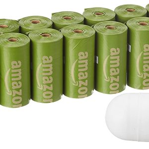 Amazon Basics Bolsas para caca de perro con dispensador y clip para correa, perfumadas o sin perfume, bolsas grandes de 9 x 13 pulgadas, verde