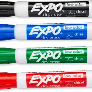 EXPO 80074 Marcadores de borrado en seco de bajo olor, punta de cincel, colores surtidos, 4 unidades