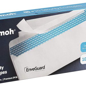 40 sobres autoadhesivos tintados de seguridad n.° 10, sin ventana, EnveGuard, tamaño 4-1/8 x 9-1/2 pulgadas, blanco, 24 libras, 40 unidades (34140)