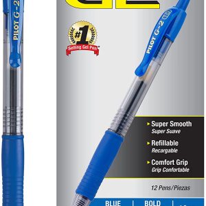 Bolígrafos de gel PILOT G2 Premium recargables y retráctiles, punta negrita, tinta azul, paquete de 12 (31257)