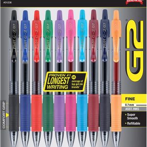 Bolígrafos de gel PILOT G2 Premium recargables y retráctiles, punta fina, tintas de varios colores, paquete de 10 (31236)