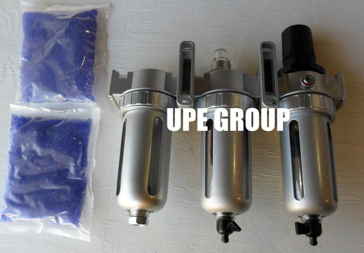 Nuevo 1/2″ Filtro de Partículas y del Regulador de Presión / colector de agua; Comprimido Línea de aire filtro de coalescencia y combinado secador desecante; 1/2″ rosca hembra NPT ENTRADA X 1/2″ hembra NPT SALIDA; TRES Unidad Etapa ha añadido separador de agua pre filtro para ELIMINAR Más grande residuos y Humedad Nuevo» / colector de agua comprimido Línea de aire filtro de coalescencia y secador de adsorción combo Filtro de Partículas y regulador de presión. TRES unidad Etapa ha añadido separador de agua del filtro pre para eliminar más grande residuos y humedad media» medio HEMBRA NPT ENTRADA X 1/2″ HEMBRA NPT sALIDA de liberación rápida cuencos y guardias de metal para una fácil maintenence y protección de la pared soporte de montaje incluido filtro y regulador de presión combinación 150 Max partículas presión:.. 0,05 micras filtro asirá 95% de las grandes residuos y humedad de su compañía aérea 150 PSI max presión 7 PSI mínimo Difusor de policarbonato le permite ver los niveles de humedad en un Regulador vista ajusta 7-150 Gauge PSI incluye 0-160 PSI filtro coalescente:. 0,01 Micron filtro elimina 99.998% de residuos restantes y la humedad la izquierda desde el filtro de partículas que tiene una partículas en el comienzo de su línea aérea se extiende la vida útil del filtro coalescente. el indicador rojo se eleva cuando el elemento del filtro necesita ser reemplazado Difusor de policarbonato desecante Aire Secadora: Viene con 2 bolsas de perlas desecantes perlas vuelven de color rosa, una vez que estén listos para ser cambiado .. use un horno estándar para secar los granos de desecante hasta 3 veces. instrucciones de uso y de instalación están incluidas Adicional Filtrado Todos nuestros productos son de Estados Unidos SKU 10011838341