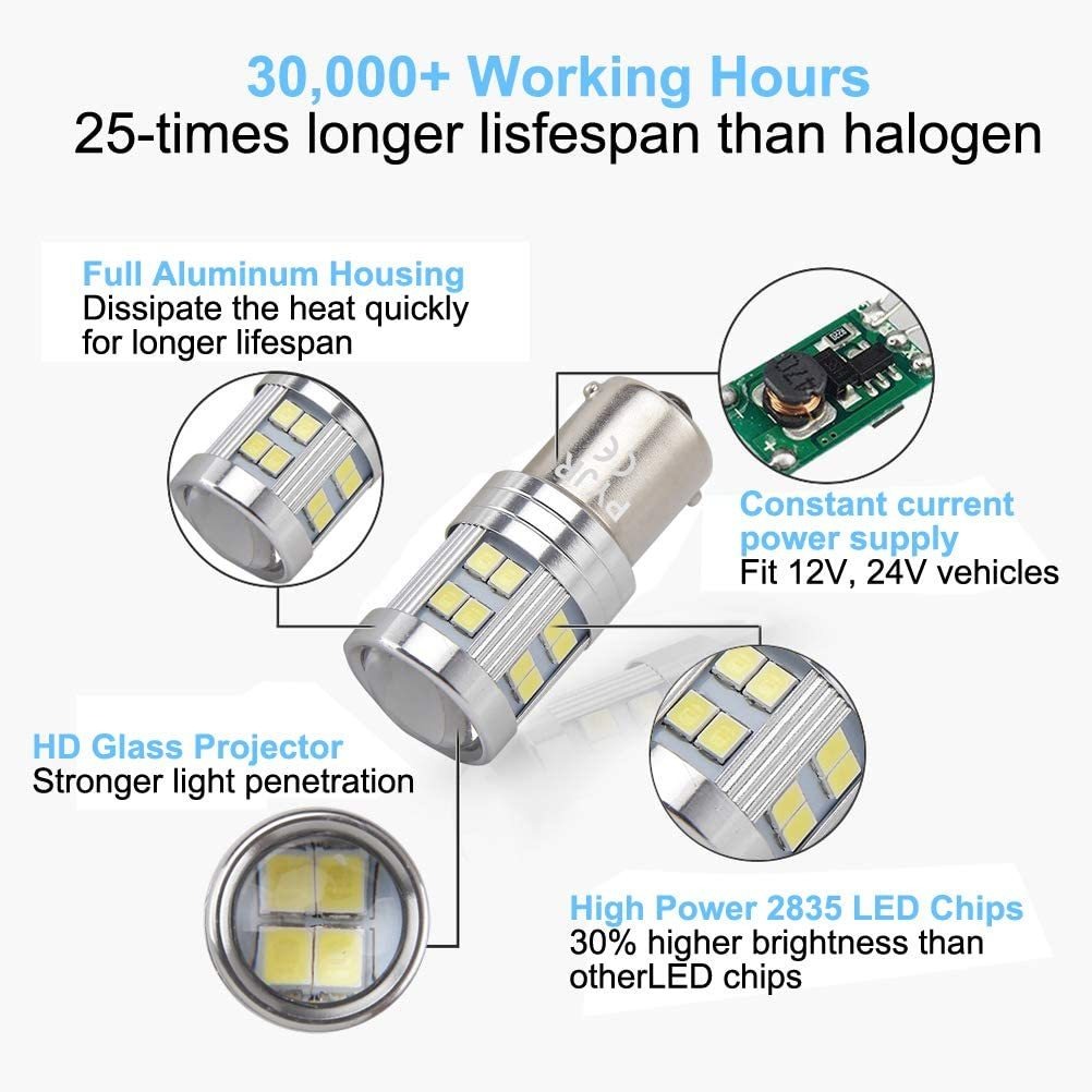 Especificaciones del producto: Voltaje de Funcionamiento: 10 V-30 V, Potencia: 7,2 W / PC, 1000 lm / bombilla, 6000 K xenón blanco .; Ventaja: 1156 Luz de marcha atrás con proyector HD, Garantiza Una visibilidad Óptima y Una Penetración de luz Más fuerte .; Fácil Instalación: diseño compacto, el pecado Polaridad, Tamaño de la bombilla: 1,8 x 0,7 en, Plug and Play, Reemplazo ideales para Tus Bombillas halógenas .; Mayor Tiempo de Uso: controlador IC inteligente Integrado y el material de aluminio de aviación PARA UN mejor Rendimiento, Rápida disipación de calor, proporciona Hasta 30.000 horas de vida Útil .; Aplicación: luz de marcha atrás, luces Traseras, soplador de nieve, faros de cortacésped, foco de tractor De Césped, etc. Color: 1156-Blanc