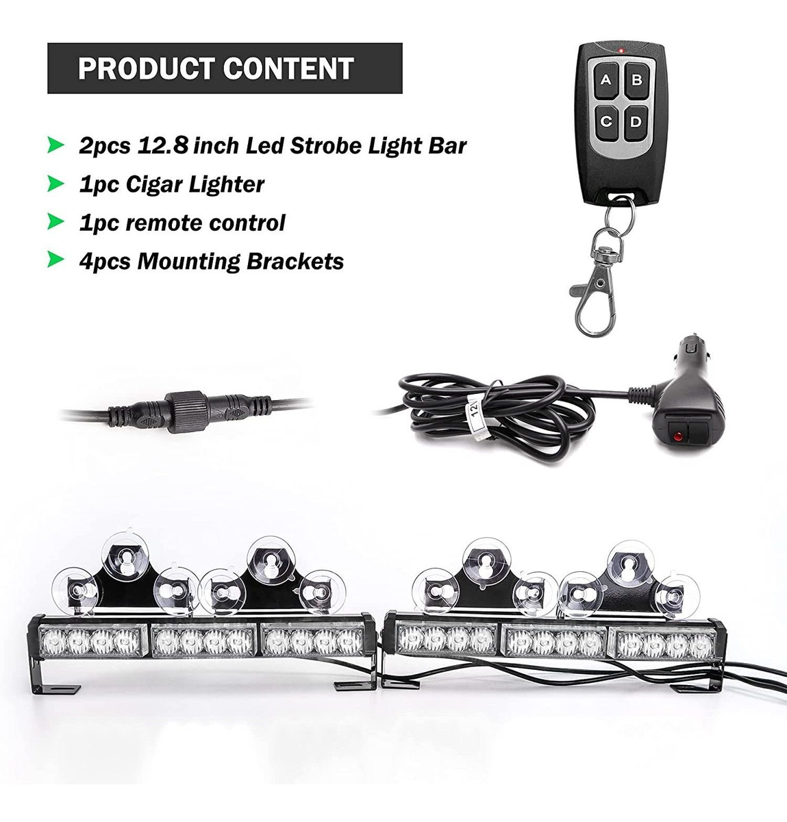 Superbrillante: LED De Alta Intensidad y Lente de Transparencia Hacha de ABS Que Soporta FotoenveJecimiento. ALTA VISIBILIDAD EN LA LUZ DEL DÍA, MEDIANCHE, LLUVIA O DÍAS DE NIEBLA, MEJORA LA SEGURIDAD DEL CONDUCTOR Y EVITA Accidentes.; Característica: Control REMOTO INALÁMBRICO (DISTANCIA DE TRABAJO 19.7 – 32.8 FT), Diseño impermeable, 23 Patrones de Flash Seleccionables Para Coche Luces Estroboscópicas LED.; Kit de Cableado: Voltaje de Funcionamiento de 12 DV, Cable de 13.1 FT Lo Suficientemente LARGO CONVENDOR DE CIGARRILLOS INCLUSO DESDE LA CONSOLA HASTA LA VENTANA Trasera.; Aplicación: VEHÍCULOS DE EMERGENCIA, VEHÍCULOS DE BOMBEROS, SERVICIO POSTAL, VEHÍCULO DE CONSTRUCCION, PUNTENCIA DE SEGURIDAD, etc. Color: Rojo y Azul | TAMAÑO: 2×12.8inch