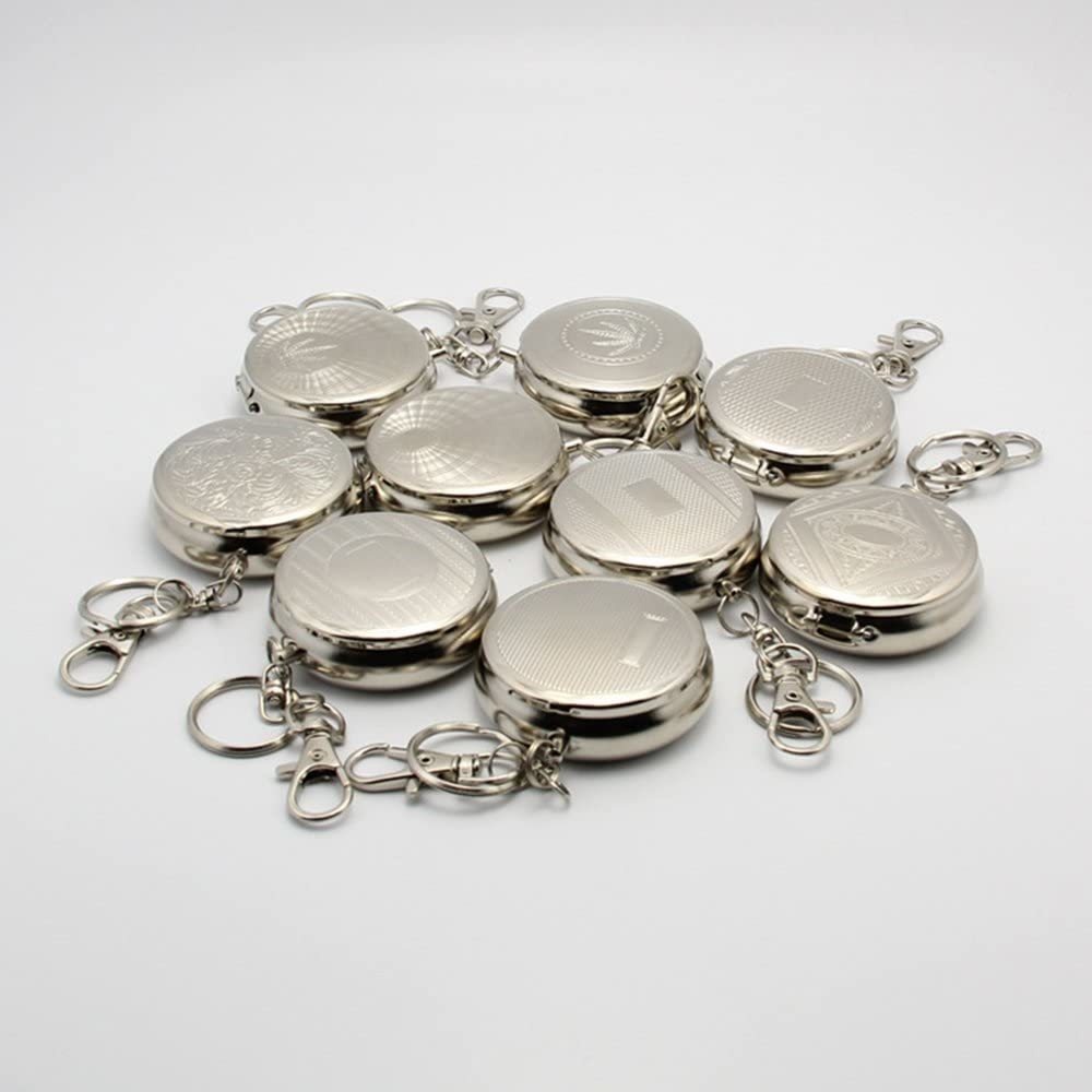 Fabricado en acero inoxidable, adornada con el modelo de flor exquisita, es durable y de la moda .; El paquete incluye: 2pc x cenicero de bolsillo portátil, zuecos de flores al azar .; Voltear la tapa abierta y el titular de cigarrillos con llavero pestillo. Fine estanqueidad, no hacer un lío; pulsador, aparece sin esfuerzo abierta .; Fácil de llevar, lo suficientemente pequeño, sólo puede ponerlo en su bolsillo o colgarla en su cintura. Un regalo maravilloso para sus amigos .; Fácil de limpiar. Advertencia: Después del lavado, por favor, que no se moje, lo que ayudará a proteger el producto. Color: tallado Patrón