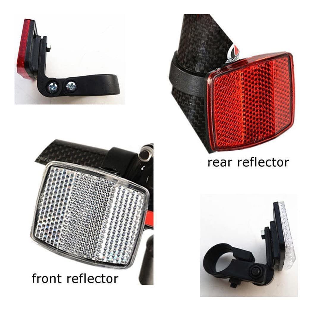 Material: plástico. Color: rojo (trasero); blanco (delantero).; Medidas aproximadas: 2.2 x 1.6 in (largo x ancho).; Reflector trasero: ajustable a manillar de 1.126 in de diámetro.; Reflector delantero: ajustable a manillar de 0.874 in de diámetro.; Se aplica a la mayoría de bicicletas con soporte reflector. Especificaciones: