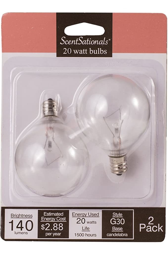 20 W bombillas para su USO En El Tamaño completo Calentadores de cera; Bombillas sin mercurio contienen, párrafo Seguro EL USO en la cocina, cuarto de baño, o any habitación .; Este paquete de DOS Contiene bombillas de 20 W; Estas Bombillas hijo Eficiente de la Energía, y PUEDE Durar Hasta Un año. (BASADO en un 4 / hr de Un día de USO) .; Trabajará en any scentsationals, ambiescents, commonscents Lo Mejor Casas y Jardines Tamaño Completo Calentadores de Cera 20 W bombillas SE AJUSTE En La Mayoría de los Calentadores de Cera de Tamaño completo. Bombillas de repuesto para, scentsationals ambiescents, Y commonscents calentadores de Marca. base de los candelabros. Todos nuestros productos estan en inglés SKU 8112032081