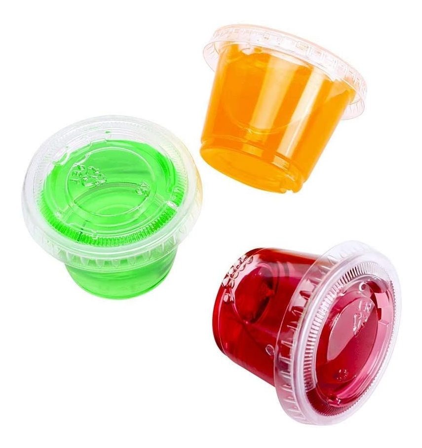 200 Tazas y 200 tapas, perfecto para Planificación de comidas, de picnic, barbacoas, fiestas y eventos de degustación. Buena calidad, reutilizable, Duradero y desechable, Calidad de restaurante .; Tapas herméticas con Cierre de Presión audible para sellar la tapa Y Sin Fugas .; Vasos de chupito de gelatina de plástico, vasos de condimentos, Tazas de porcion con tapas Hechas de polipropileno resistente a Las Grietas. Capacidad es perfecta para aderezos, salsas, soufflé, Muestras de Alimentos, chupitos de gelatina, condimentos, pastillas, control de Porciones, aderezos de ensalada, yogur y Mucho Más .; Un any Persona que se empaca su almuerzo para El Trabajo O que coma con Frecuencia Sobre la marcha les encantara Estas Tazas de salsa con tapas. Ahora no tendras Que empacar Pequeñas salsas, aderezos y dulces en contenedores de Gran Tamaño .; Dimensiones Totales: Diámetro superior: 1.65 Pulgadas, Altura: 1.18 Pulgadas, Diámetro inferior: 1.1 Pulgadas, Capacidad: 1 oz. Bolsas Separadas y apilables ADICIONALES Para Los Contenedores y tapas Para Ser Fácil de Almacenar y Acceder. 200 Juegos de Tazas TashiLiving de 1 oz con un pressure tapas. soufflé de plástico translúcido / taza de porcion