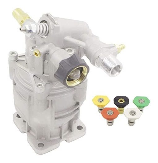 Se Adapta a la Mayoría de motores de arandela de Presión de manivela horizontal de 0,7 en Presión de la bomba de la lavadora eléctrica:. 2800 – 3000 PSI, Tasa de Flujo: 2,3 – 2,4 GPM, grado de aspiración: 0 , 5 MPa min. Temperatura de apertura de la Válvula de Control de Temperatura: 125-140 oF. El Cuerpo de la bomba this Hecho de Aleación de aluminio .; Entrada de agua: Rosca de manguera de jardín de 0,7 en Salida de agua:. Rosca macho M22. Eje: 3/4 Pulgadas. Distancia Entre el centro de los tornillos de Montaje: 2 y 9/16 Pulgadas (SE Muestra en la imagen 2) .; La Válvula de Alivio térmico y químico El Inyector ESTÁN Incluidos en la bomba (se Muestra en la imagen 3). This bomba Tiene descargador ONU (Mostrado en la imagen 4), Cuando la Presión NECESITA Ser Ajustada, gira el tornillo con Una llave .; Se Adapta a la Mayoría de los motores de lavadoras horizontales A Presion Con Un eje de 3/4 Pulgadas de 196 cc 224 cc de una: como Honda, párrafo Generac, párrafo Briggs Stratton, párrafo artesano, párrafo Karcher, párrafo BlackMax, párrafo Ryobi , párrafo Troy-Bilt .; El paquete Incluye: 1 bomba de limpiaparabrisas una Presión de 0,7 en, 4 tornillos de Montaje (apto para la Mayoría de Máquinas), 1 boquilla de jabón de latón negro, 1 boquilla de acero inoxidable rojo (0 grados), 1 boquilla de acero Amarillo inoxidable (15 grados), 1 boquilla de acero inoxidable verde (25 grados), 1 boquilla de acero inoxidable blanco (40 grados). Para bomba de lavado A Presion Homelite 3000 psi, párrafo Homelite 2900 psi, párrafo bomba de lavado A Presion Homelite 2800 psi.