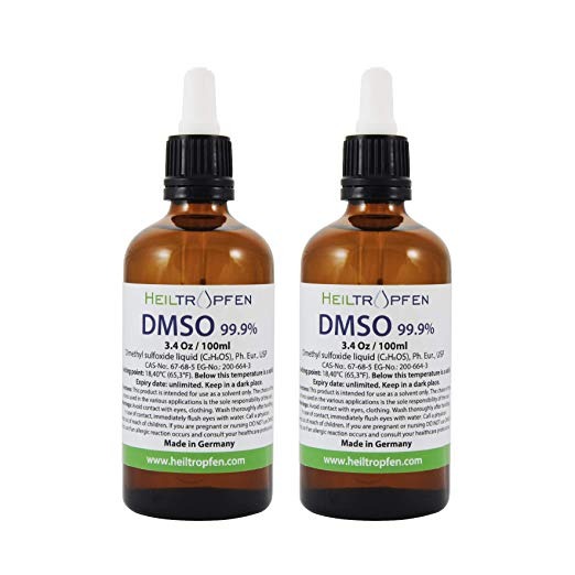 De dos componentes (dos botellas), 100 ml de 2x, 99,9% de grado DMSO Pharmaceutical .; Sin olor. DMSO líquido puro. No fragancia .; Botella de cristal con la pipeta. Dimetil sulfóxido (DMSO) es un subproducto de la elaboración de la madera .; 99,9% de DMSO puro tiene estado líquido o sólido / cristal de la materia, ya que tiene relativamente alto punto de congelación a 18,5 ° C (65,3 ° F), significa que al, o por debajo de, la temperatura ambiente se trata de un sólido / cristal, por encima de ella es líquida . 99,9% de DMSO puro tiene estado líquido o sólido / cristal de la materia, ya que tiene relativamente alto punto de congelación a 18,5 ° C (65,3 ° F), significa que al, o por debajo de, la temperatura ambiente se trata de un sólido / cristal, por encima de ella es líquida . / En caso de estado de cristal de la materia se puede poner en un recipiente amplio o una olla con agua caliente (no hervida) y cerrarlo si es posible. El agua no debe ir por encima del cuello de la botella. Después de 30-60 min cambiar el agua con uno caliente de nuevo. A continuación, mantener la botella en la temperatura ambiente por encima del punto de fusión. O ponerlo en el calentador overnight./ DMSO se ha utilizado durante más de 100 años en los Estados Unidos. Es una sustancia natural derivada de pulpa de madera y es inocuo cuando se utiliza con las precauciones adecuadas. DMSO es un líquido orgánico, incoloro, natural, no sintetizada, extraído de la lignina. DMSO uso previsto es como sólo un disolvente y la opción de usar en otras aplicaciones es responsabilidad exclusiva del usuario. Todos nuestros productos estan en inglés SKU 6081916370