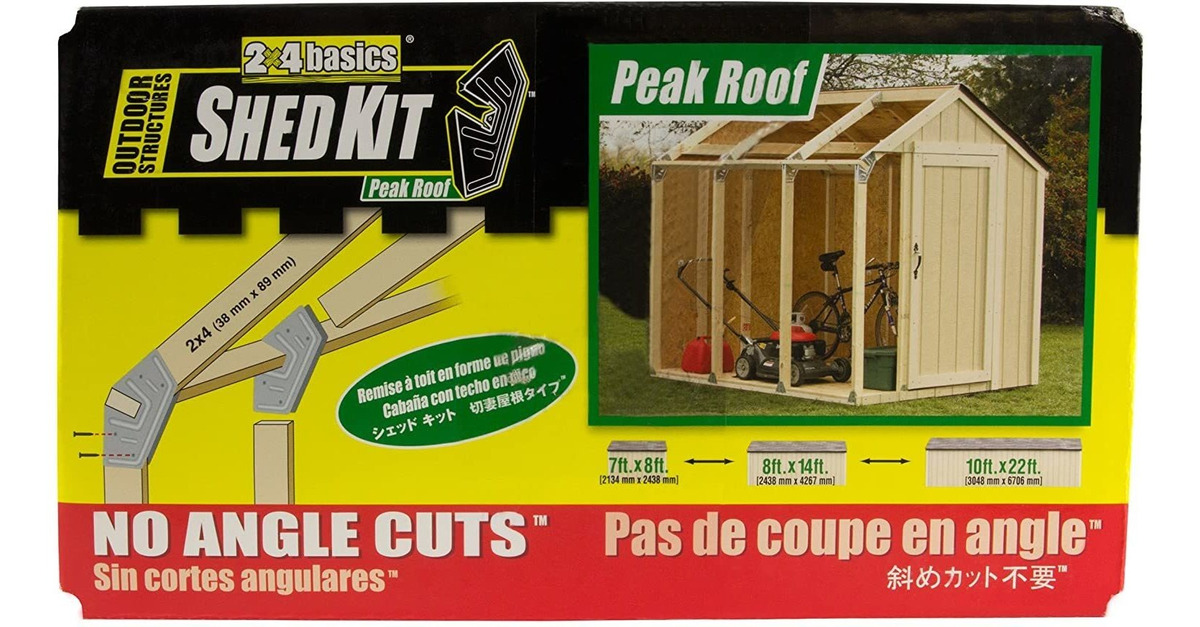 Lumber no incluido en cada kit; Adaptable arrojar kit con techo de pico; Incluye calibre .22 soportes de acero galvanizado, planes de diseño e instrucciones de instalación; Un kit construye un cobertizo de hasta 10 pies, se combinan los kits para un cobertizo hasta 22 pies; Sólo recta 90 cortes grado, no hay cortes a inglete o ángulo necesario Estilo: Pico de tejado