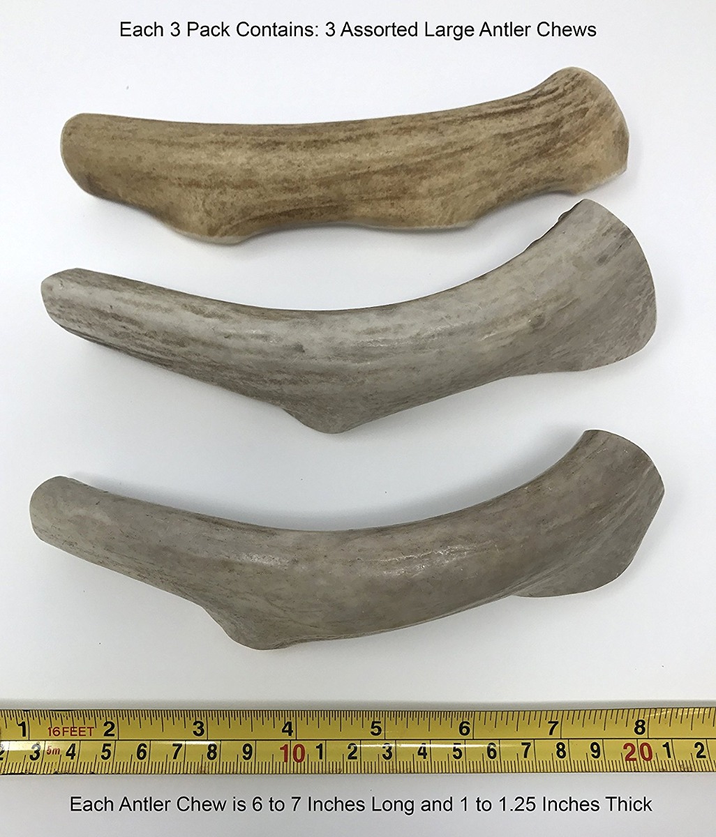 WhiteTail Naturals Grado una prima de cuerno de ciervo perro mastica .; 3 Chews las astas. De gran tamaño: de 6 a 7 pulgadas de largo, por lo menos 1 pulgada de espesor .; Seleccionadas a mano – Lavado, corte de encargo, recortado y Sanded.Antlers son naturales, forma y tamaño puede variar ligeramente .; Larga duración, Mess y sin olor! Naturalmente Lleno de Minerales .; Origen y hecho a mano en los EE.UU.. Sin adición de ingredientes, conservantes o sustancias químicas. 3 PACK-cuerno de venado perro mastica, de gran tamaño: 6 a 7 pulgadas de largo y 1 + pulgadas de grueso Grado A. 100% de la cornamenta natural que su mascota amará absolutamente. Nuestros mastica la cornamenta son naturalmente llenos de minerales, y una gran fuente para mascotas salud de los dientes. Ellos son de larga duración, no se astillan y son olor y libre de desorden. Nos mano de selección, lavado, cortado a medida, recorte y la arena cada cuerno para la seguridad y el disfrute de su mascota. WhiteTail Naturals Brand mastica asta de ciervo se obtienen y fabricados en los EE.UU.. Sin aditivos o conservantes. Por favor Nota: Debido a que este producto es todo natural, cada una cornamenta masticar puede variar ligeramente de tamaño, forma, densidad y tono de color. * Precaución: Siempre vigile a su mascota al masticar o astas Cualquier hueso de juguete * Todos nuestros productos son de Estados Unidos SKU 8031845423