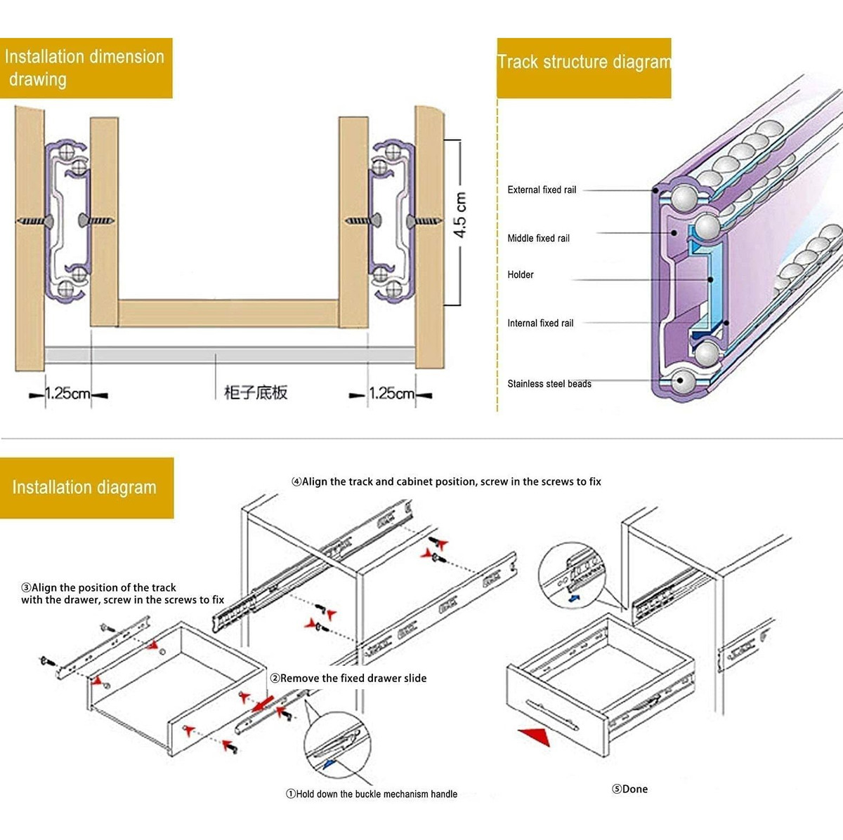 Cajones deslizantes de Cierre suave de 10,0 en: Hechos de acero laminado en frío de Alta Calidad, garantizan Calidad y Durabilidad. Acción de rodamiento de bolas de acero Montado lateralmente, s capacidad de 99.2 libras; Suave y silencioso: Con Su diseño de doble resorte y el triple rodamiento de bolas, Estas Guías de cajón de extensión completa del te dan Una Extracción suave SEGUIDA DE UN Cierre suave y silencioso Cada Vez. Rodamientos de Bolas de Acero Que garantizan la ONU Rendimiento suave y silencioso; Instalación Rápida: ESTOS cajones con RODAMIENTOS de Bolas hijo de triple de Montaje lateral Y se adaptan a la Mayoría de los cajones de armario. Incluimos Tornillos de Montaje Y Toda La informacion Que necesitarás Para Una Instalación Sin problemas. Montaje lateral, diseño pecado mano, parada positiva; Aplicación: Este producto Tiene Varias Aplicaciones en cocinas, oficinas, tiendas, Institutions residenciales Y; El paquete Incluye: 3 Pares de Guías Suaves de 10.0, con 12 Tornillos de Montaje Incluidos Nombre del Talle: 10 pulgadas / 25 cm-6pcs