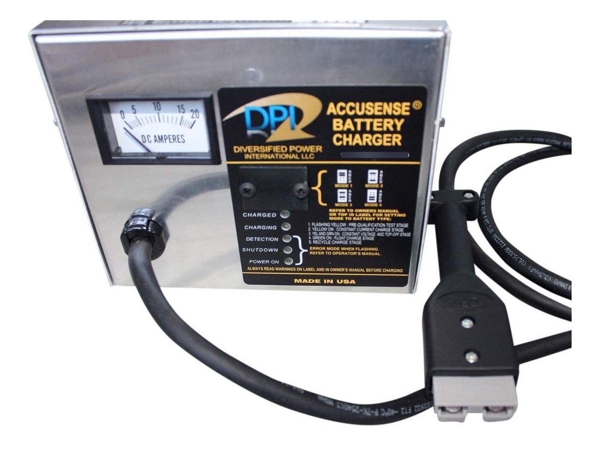 PLASTIC / acero; Hecho en EE.UU; Salida de 36Vdc 18Adc, 120Vac 60Hz de entrada; Anderson SB-50 de la manija EZGO Marathon TXT 1983-Up; Patentado Selector permite al usuario cargar las baterías más de plomo-ácido; 9 pies de entrada y salida Longitud cuerdas, Hecho en los EE.UU.; UL / CSA, Protección contra inversión de la batería Esta EZ-Go 36 voltios 18 amperios Accusense cargador inteligente con SB50 manija se hace en los EE.UU. por Diversified International Power. Corresponde a los EZGO Maratón / TXT 1983-Up carros de golf de 36 voltios. El microprocesador inteligente con control multi-etapa de carga Algoritmo para diversos tipos de plomo ácido de batería utilizados en el carro de golf, aplicaciones eléctricas y vehículos industriales. la construcción de intemperie garantiza la fiabilidad. Supera 35A nominales cónicos Tipo cargadores. Este cargador está diseñado para mantener el voltaje de su batería después de que se cargará el 100%, lo que conducirá a la duración de la batería! No va a sobrecargar las baterías, ya sea. Se entra en el modo de mantenimiento una vez que se alcanza la carga completa. Excelente para los propósitos para el invierno o simplemente tienen sus baterías siempre listo. Dado que este es verdaderamente un cargador inteligente, cargará las baterías con un precio tan bajo como 4 voltios. Tres años de garantía a través del fabricante: El fabricante, Diversified International Power LLC (DPI) garantiza exclusivamente al comprador original que los cargadores serán reemplazar o reparar, a opción del DPI, si se produce un error durante los tres primeros años después de la fecha de compra debido a la defecto en el material o mano de obra. Adicional Filtrado Todos nuestros productos estan en inglés SKU 12111704654