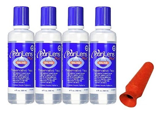 Cuatro (4) 4 fl. onz. botellas de PuriLens Plus solución; Misma formulación que Unisol 4; Sin preservativos. Basta con solución salina tamponada; Copa escleral grande de contacto de la lente Handler – Inserta y elimina las lentes de contacto esclerales y prótesis oculares Este paquete incluye: Cuatro (4) 4 fl. onz. botellas de PuriLens Plus conservantes salina y una (1) Copa escleral grande Contacto Handler lente. Anteriormente conocido como PuriLens Plus Ultra PF. El libre de conservantes calidad más fina, la solución de pH equilibrado, isotónica, estéril salina. No contiene clorhexidina, timerosal u otros compuestos que contienen mercurio. Todos nuestros productos son de Estados Unidos SKU 23111804786