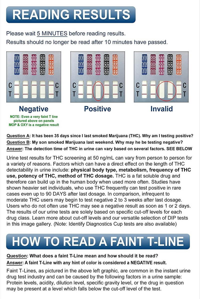 fecha de caducidad para este descenso prueba de drogas está encendido o mejor que: May 31, 2022; Exoneración de la CLIA / 510k despejado. IMPORTANTE: Espere un total de 5 minutos antes de leer los resultados. Algunos T-Lines pueden aparecer al instante y algunos pueden requerir hasta 5 minutos para reaccionar completamente con la muestra de orina .; Más del 99% de precisión en la detección de fármacos de acuerdo con la línea de corte niveles recomendados: Anfetaminas AMP, barbitúricos bar, benzodiazepinas BZO, cocaína COC, el éxtasis MDMA, Marihuana THC, metadona MTD, metanfetaminas MET, opiáceos / morfina MOP, oxicodona OXY; cuencos de recogida no incluidos. Retire la tapa antes de la inmersión, inmersión en la orina durante 15 segundos. 2 líneas aparecen si es negativo, 1 línea si es positivo .; Utilizado por los servicios nacionales de rehabilitación, pruebas de drogas oficina en casa, lugar de trabajo, instituciones educativas, el manejo del dolor, medicina familiar, hospitales, tribunales de drogas, la policía, las agencias de personal Todos nuestros productos estan en inglés SKU 4032112590