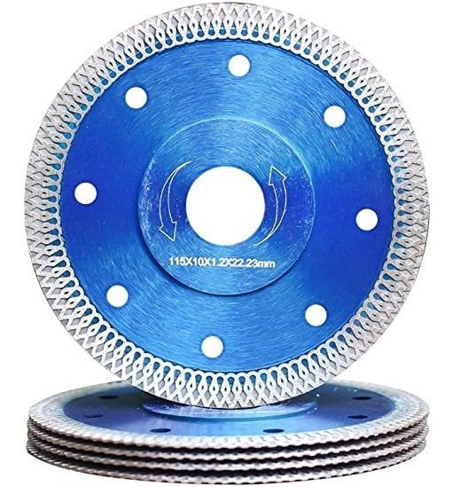 Hoja de 4,5 in de Diámetro, mando: 0.9 – 0,6 en .; Método de corte: seco / húmedo; Corte suave Extremadamente, astillas pecado .; La Hoja de azulejos de 4,5 en ESTA diseñada para cortar porcelana, azulejos de cerámica, granito, arenisca cuarzo, mármol, ladrillo, tablero de cemento; Cantidad: 5 unidades Tamaño: 4.5 -5pcs