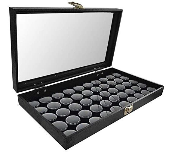 Especificaciones: 50 Negro Gema Tarros En La Tapa De Cristal Caja De La Pantal