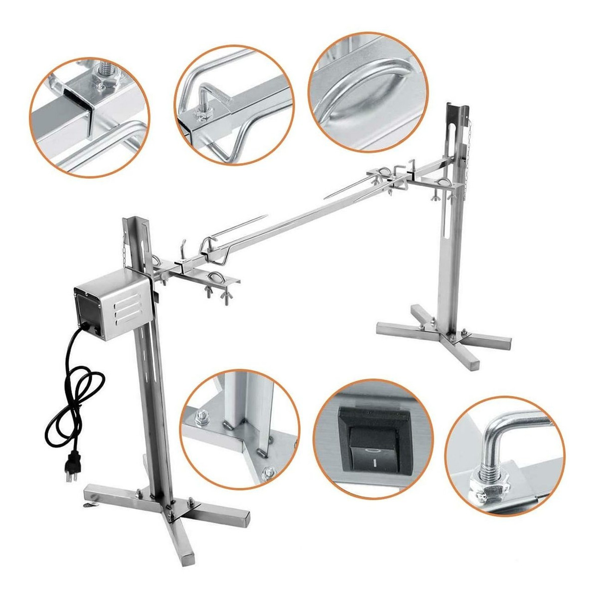 inoxidable Rotisserie: Todo el cuerpo de bastidor de acero inoxidable con exquisita soldadura, con la característica de resistencia a la oxidación fácil de limpiar, que lleva en estable y un rendimiento duradero en cualquier condición .; grande compacity: Acero trípode con una capacidad de carga de hasta 66 lb (30 kg), junto con 5 niveles de cocción ajuste de altura aplicada en la calcinación de jamón, pechuga, y pollos enteros, cerdo, cabra, cordero, pavo, etc. ; Kit profesional: Equipado con motor 15W asador. motor eléctrico eficiente capaz de capacidad de carga con una alta eficiencia, Incluyendo todos los kits como 2 pinchos de carne, 2 horquillas para sujetar las gallinas, un kit de equilibrio y así sucesivamente .; automática Grill: dispositivo especialmente diseñado, un extremo está diseñado para encajar en el motor, y el otro extremo está equipado con un mango adecuado para la mayoría de las parrillas. Añadiendo a la vez divertido y eficiencia a su partido de la parrilla .; aplica extensamente: Un dispositivo ideal para asar su pesca del día, mientras estás de camping, la pesca o la caza, puede deleitarse con la comida de asador-cocida cuando y donde se obtiene el anhelo. Todos nuestros productos estan en inglés SKU 4032116059