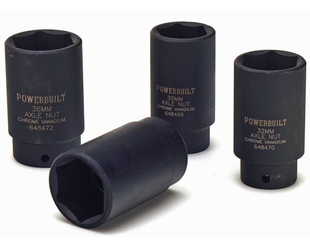 2 pc de escape establece Kit9; soluciones de herramientas para la mayoría de todas las situaciones; Construido para superar los estándares de la herramienta; Hecho con precisión y calidad en mente; Altamente durable; Conjunto de herramientas para quitar las tuercas del eje de tracción delantera; tasa de impactos de 6 puntos casquillos de cromo vanadio; tamaños socket cubren la mayoría de las aplicaciones; Caja de almacenamiento incluye fotos de uso; Kit 10 incluye tomas de tamaños de 30 mm, 32 mm, 34 mm y 36 mm para las tuercas del eje de la rueda delantera Descripción del producto