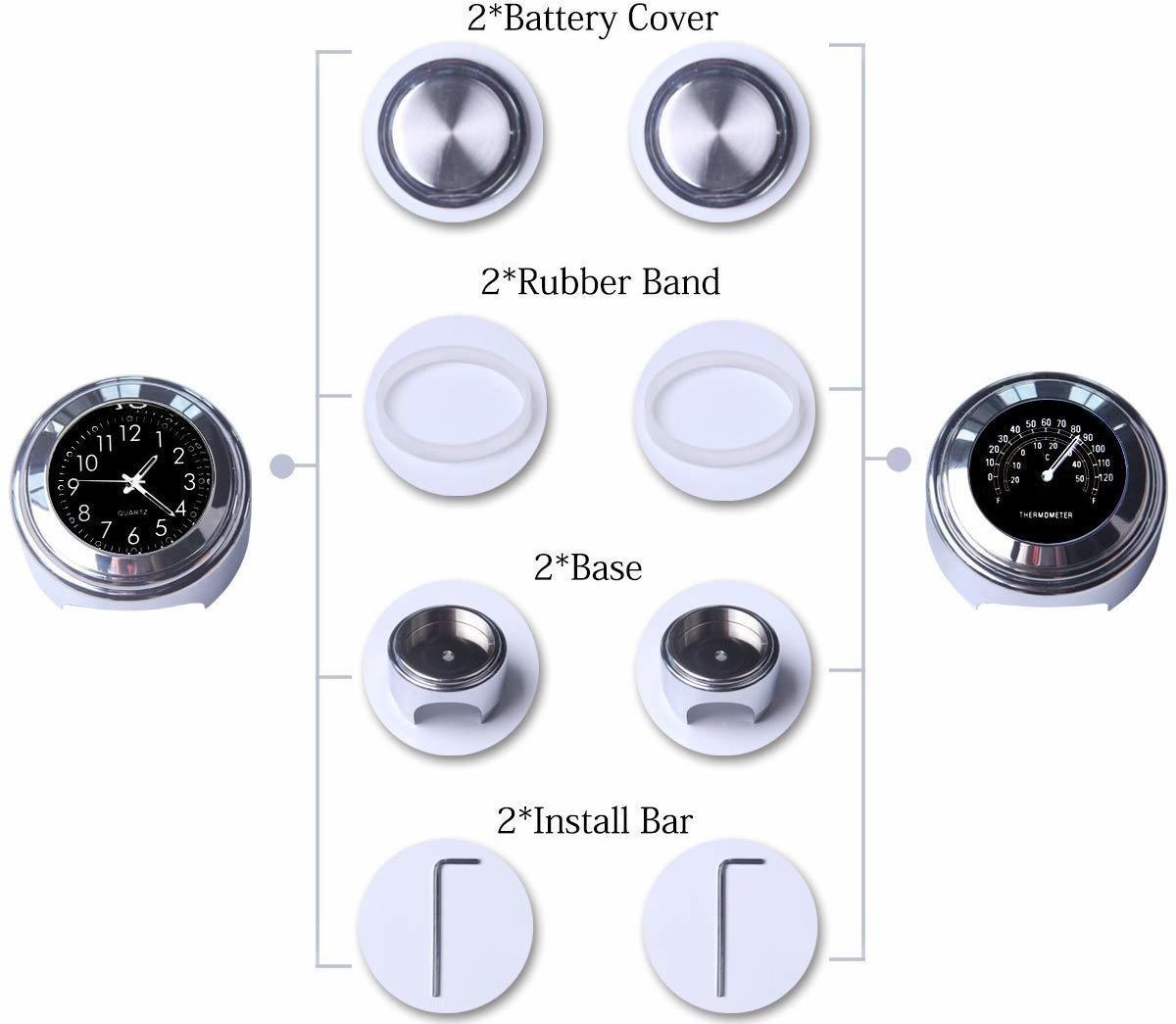 reloj de la motocicleta: 7/8″ 1″ manillar de la motocicleta del reloj y termómetro; Reloj y termómetro Diámetro: 1 7/16″ 100% a prueba de agua, a prueba de golpes; Cantidad: Reloj de la motocicleta y termómetro (1x 1x Reloj Negro Negro Termómetro); Nota:. La batería está funcionando de la fábrica Si se reúnen esta batería es muerto cuando estás que, por favor, no se preocupe, este reloj es nuevo Ellos se pondrán a la obra después de reemplazar la batería Gracias;.. Ajustar la mayor parte de la motocicleta Suzuki Kawasaki Yamaha Honda / crucero / Chopper / encargo con 7/8″ o 1″ del manillar De color negro