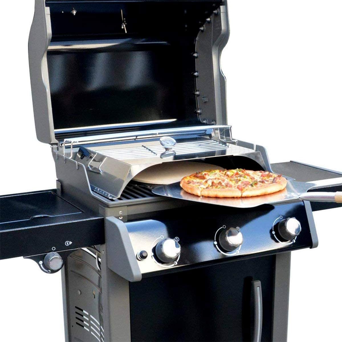 22×15 pulgadas pizza kit horno es fácil de instalar y de usar en la mayoría de las parrillas como parrilla de gas Weber, Pit Boss Traeger de pellets de madera Parrillas, que incluye 3 pizzas accesorios que hacen: cámara de acero inoxidable pesado, termómetro y piedra pizza al aire libre 15 ; abierto de la cara superior de la parrilla la pizza kit de horno, el diseño compacto permite una acumulación de calor a través de la pizza es necesario, hacer una deliciosa pizza de 5 a 8 minutos y ver en vivo cómo la pizza se hace; carcasa de acero inoxidable con la piedra de cerámica cordierita duradera, saca fuera la humedad externa masa y promueve la corteza perfecta, dejando el interior húmedo y esponjoso; le permite probar todas sus recetas preferidas y hornear pan, trozos de pollo, camarones, galletas, tartas y cualquier otra pastelería a la perfección. Todos nuestros productos estan en inglés SKU 4032116534