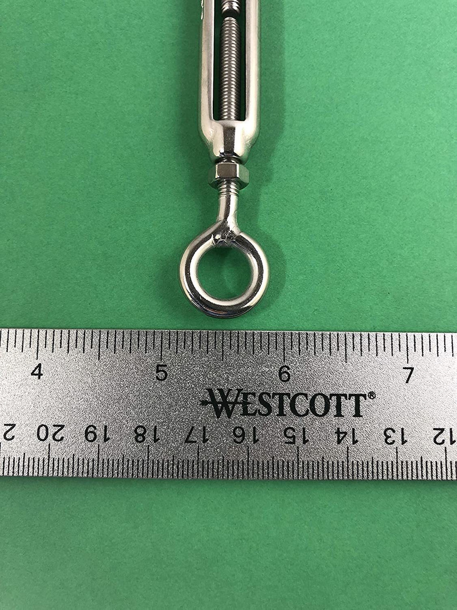 1500kg Carga límite de trabajo .; La corrosión y el óxido resistant- para una larga vida de servicio; tamaño M5 (3/16 equivalente) de 5 mm, la calidad de precisión Smooth Esto es para uno de acero (1) calidad de grado marino inoxidable (AISI 316) tensor (o cuerpo abierto) ojo y ojo con tuercas de seguridad. Cada tensor se estampa tanto el tamaño métrico 5 y 316 del grado. Se trata de un tensor métrico M5. El equivalente imperial se considera generalmente que es 3/16 . No debe utilizarse para la elevación por encima. Inoxidable AISI 316 es una calidad premium de acero y es considerado por muchos como el mejor en la clase. 316 es de acero corrosión incluso resistente y muy duradero en las condiciones más duras. Todos nuestros productos estan en inglés SKU 12062129150
