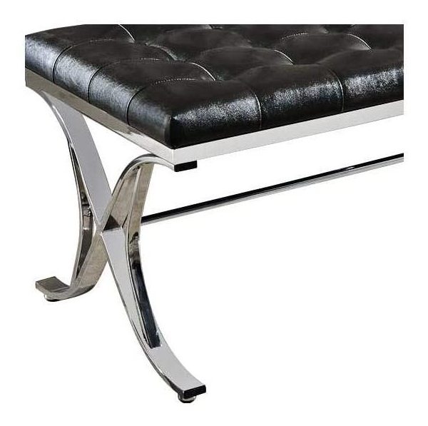 Button Tufted Cushion PU; Foam: 2 Thick; Metal Base: Chrome X Style Leg Crossbar Support Color: Negro Pu y cromo