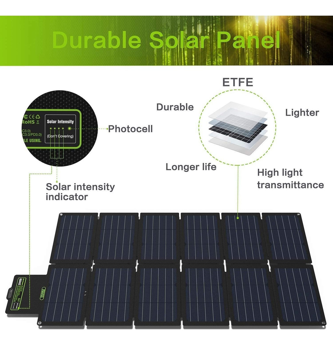 Diseñado para la central eléctrica más portátil: La salida de CC 19V para la carga de la estación del generador de energía portátil, compatible con Suaoki, Jackery, Webetop, Gol cero, la salida Paxcess etc. El DC 14,4 V, se puede cargar la batería de 12 voltios para automóviles barcos recreativos marinos etc directamente .; USB de carga inteligente Tecnología: Dual puertos USB 2.0 y QC3.0 (5V / 9V / 12V 2A max), diseñado para teléfonos inteligentes y tabletas (compatible con iPhone, iPad, Samsung Galaxy), GPS, cámaras digitales, etc. perfecto para la vida al aire libre y incluso cortes de energía inesperados. La acumulación en el chip IC inteligente inteligente identifica el dispositivo, y maximiza su velocidad de carga mientras protege sus dispositivos de más de carga y sobrecarga .; Potente alta eficiencia de conversión: Con células solares monocristalinas de alta eficiencia, se consigue una mayor eficiencia de energía a pesar de que el panel es más pequeño que un modelo maximiza la producción sistema tradicional mediante la reducción de la pérdida de desajuste. Se comporta mejor que los paneles solares policristalinos con calificación similar en condiciones de poca luz .; Durabilidad: El panel solar está completamente laminado, laminado hecho por la tecnología avanzada y materiales de ETFE, hecho para el uso a largo plazo de más de 15 años de larga duración. NOTA: Antes de prueba de la tensión de 14,4 V puerto, necesidad de conectar una carga / batería para activar. Todos nuestros productos estan en inglés SKU 4032117185