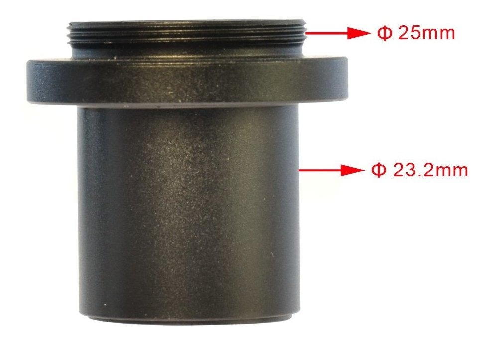 Adaptador de conector CCD 23.2mm; C estándar de montaje de 25 mm para la cámara microscopio industrial; Aplicable para el montaje 23.2mm microscopio biológico; Pequeño agujero y todo el uso abierto de dos vías. Característica