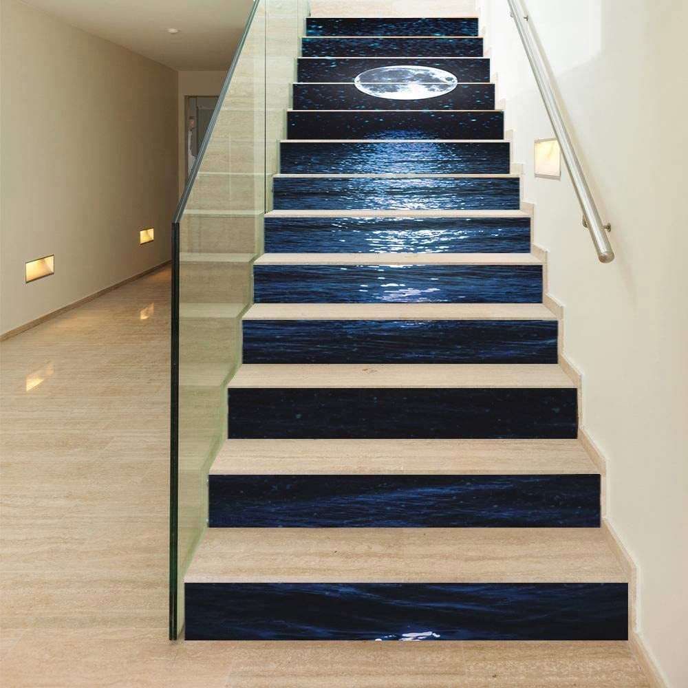 13 piezas por juego (tamaño 39.37 x 7.09 pulgadas cada pieza), antideslizante, impermeable, para escaleras, sin polvo; Mural decorativo de PVC para escaleras, se quita fácilmente sin dejar residuos; Algunas pegatinas con poco pegamento autoadhesivo necesitan pegamento para su instalación; Calcomanías elevadoras para sótano con diseño de cielo nocturno oscuro, océano, luna brillante y estrella; Decoración ecológica para casa que redecora y reforma escaleras interiores sin pegamento Calcomanías de PVC para escaleras de material ecológico con diseño de océano oscuro, cielo nocturno, luna brillante y estrellas. Los murales impermeables y antideslizantes para escaleras están hechos de 13 piezas adhesivas y el tamaño es de 39.4 in x 7.1 in por pieza. El póster de vinilo grueso con poco autoadhesivo está incrustado con pegamento. Estos papeles adhesivos también se pueden decorar en el sótano elevador y escalera. Aviso: 1. Recorta la pieza separada si el tamaño no es compatible. 2. Pegar lentamente evitando que se formen burbujas. Promesa: puedes enviar los artículos y te reembolsaremos si no estás satisfecho Todos nuestros productos estan en inglés SKU 91221002433