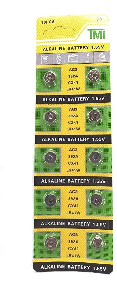 Nuevo pilas AG3. Exp 12 a 2021; Uso universal: Intercambiables con nombres y Química de la marca / designaciones (Variar): Compatible con AG3, g3 a, LR736, LR41, V36 A, L736, 192, 392, GP192, 392 A, 92 A; Alta Densidad de Energía, batería de larga vida reloj. Excelente Resistencia de fuga y Larga Vida Útil; Larga Duración: hijo no baterias recargables; Usos comunes : APLICACIONES cuentos de Como relojes, calculadoras, medidores de monitores de Presión arterial, glucosa, Audífonos de Bajo consumo Y Muchos Otros Productos Electrónicos con Bajo consumo de la Batería. Tamaño: 10 piezas