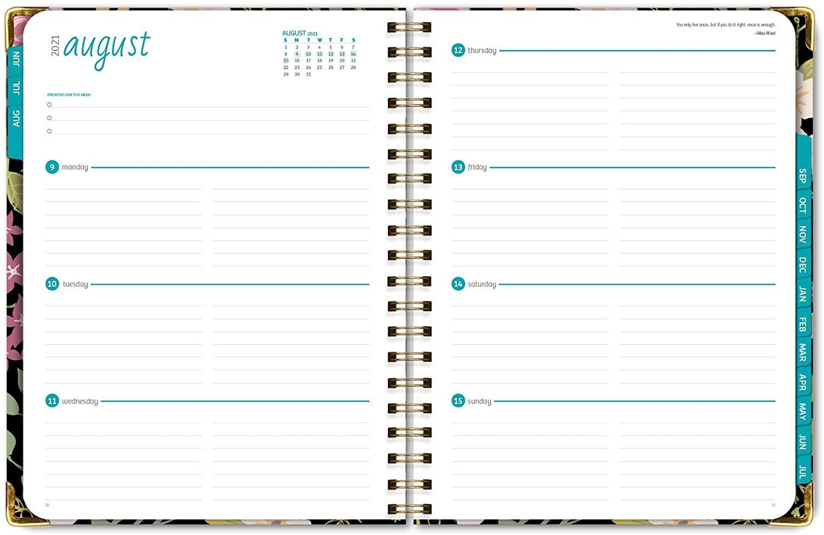 Agenda de 14 meses (de junio de 2021 a julio de 2022) con pestañas mensuales; Tamaño: 8.5 x 11.0 pulgadas; 2 páginas mensuales seguidas de 2 semanales; Cubierta dura súper fuerte y bolsillo en interior de tapa trasera; De regalo Señalador/marcapáginas a tono y juego de notas adhesivas Todos nuestros productos estan en inglés SKU 91221061658