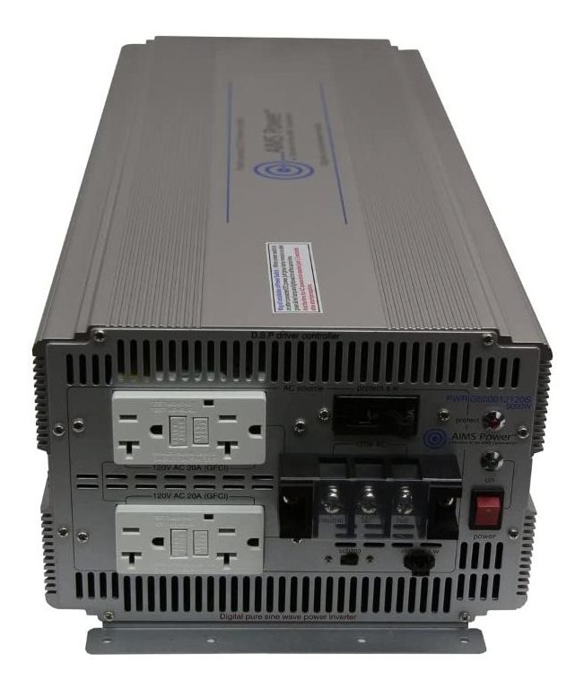 AIMS Potencia PWRIG500012120S sinusoidal pura inversor de la energía, 5000 vatios de potencia continua, 10000 oleada Watt, 12 de entrada Volt DC, onda sinusoidal, 60Hz o 50Hz interruptor, la producción mejorada de alta eficiencia Pure a bajo voltaje, 2-GFCI Dual Outlet
