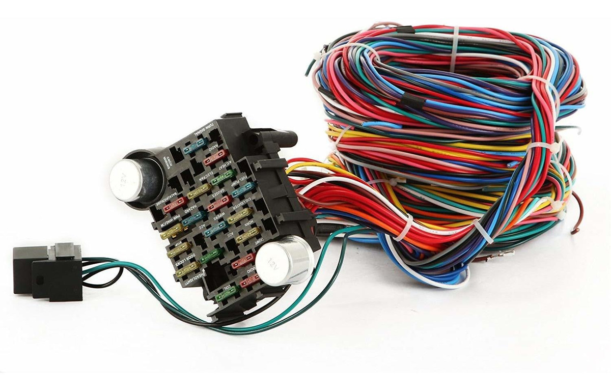¿¿¿ El 21 Circuito del haz de cables están todos codificados por colores para facilitar la instalación de GM; ¿¿¿ Los circuitos incluyen: cuerno, ventilador, luz de techo, peligro, radio, encendedor, cerraduras de puertas, frenos, faros, luz del tronco, medidores, copia de seguridad y de crucero, limpiaparabrisas, estrangulador, bobina, a / c, eléctrica de combustible bombear, ventanas y luces de giro; ¿¿¿ Los 12 circuitos de arnés de cableado también incluye relé de bocina y el conector, señales de giro y de peligro, conector de regulador de intensidad, interruptor de circuito para faros, luces intermitentes de 2, 1 enchufe alternador, 2 de encendido Conectores de conmutación; ¿¿¿ El kit de arnés de cableado viene con instrucciones detalladas y tienen páginas específicas para GM, Ford y Mopar; ¿¿¿ El kit mazo de cables de color estándar del haz de cables 21 son muy largos para que puedan ser utilizados en casi todos los vehículos 21 Circuito Mazo de cables para Chevy Mopar Hotrods Ford Chrysler universal