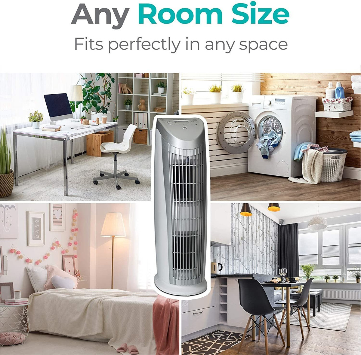 Alen T500 tower air purifier is ideal for rooms from small to large sized living spaces including bedrooms, living rooms, family rooms, nurseries, laundry rooms, bathrooms, kitchens, offices, and more! T500 airflow effectively cleans 500 SqFt every 30 minutes. Alens True HEPA-Silver filter is for multipurpose use it captures airborne allergens like dust, pollen, pet smells, fur, household odors PLUS mold, germs, and bacteria and includes an activated carbon layer to absorb smoke, fumes, cooking odors and other VOCs. The medical grade H13 True HEPA material captures 99.99% of airborne particles down to 0.1 microns. Alen T500 is extremely simple to use and easy to maintain. The portable tower features an LCD panel with intuitive controls, allowing you to adjust settings with just a quick touch of a button. Two color options (black white) so you can pick the best match for your home décor. And easy-to-change True HEPA filters ensure the quality of the air you breathe is the healthiest for you and your loved ones. The Energy Star Certified T500 air purifier transforms your indoor air environment using directional airflow for consistent performance no matter its placement or the obstacles in the room. CFM (airflow in Cubic Feet per Minute): Speed 1: 48 CFM; Speed 2: 83 CFM; Speed 3: 130 CFM; CADR: 159; Noise levels: Speed 1: 42 dB, Speed 2: 47 dB, Speed 3: 56 dB; Power Consumption: 53 watts on highest speed; Power Supply: 120V; Size: 22H x 6W x 10D; Weight: 9 lbs Includes: T500 air purifier, HEPA-Silver Filter. Todos nuestros productos estan en inglés SKU 91221010413