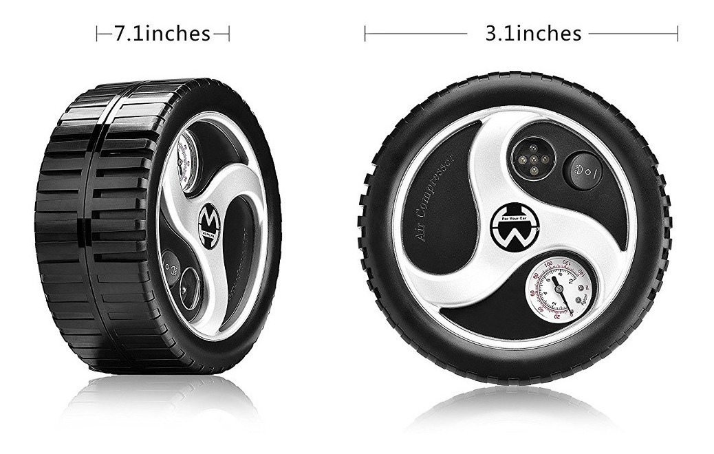 Peso ligero y compacto Peso del artículo: 1,8 libras; Presión máxima: 100PSI; Conexión de la alimentación conecta directamente en el encendedor del coche; El apoyo a una variedad de adaptadores, además de su uso como un inflador de automoción; Con más de una presión establecida cuando se infla la función desinflado Compresor de aire portátil Nombre del producto: Compresor de aire portátil
