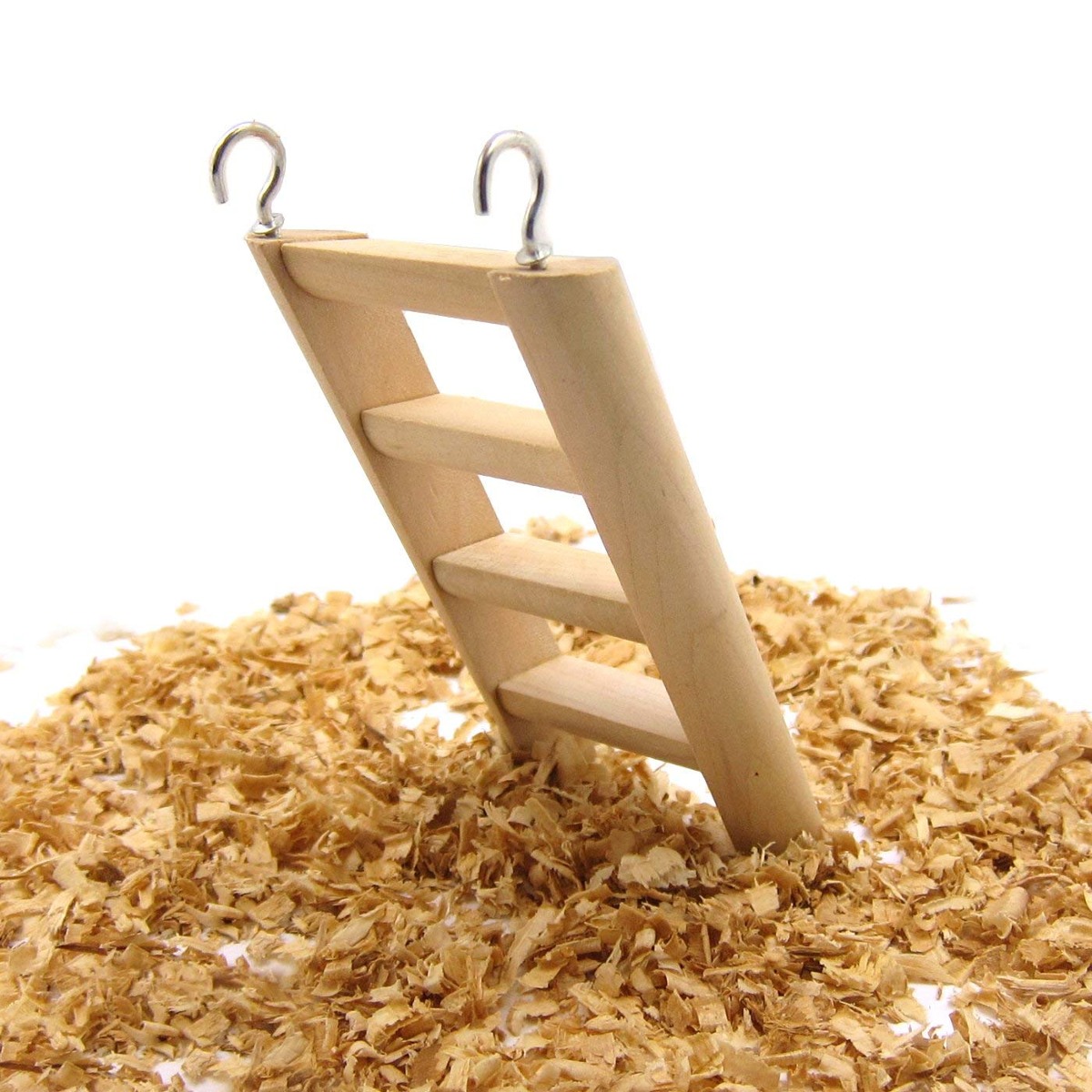 Compruebe que es jaula para áreas masticadas o dañados. Retire cualquier alimento viejos y comprobar los juguetes para asegurarse de que todavía están trabajando y en buenas condiciones. Mantener su animal doméstico seguro y bien cuidado puede dar a usted ya su mascota una experiencia larga y feliz! Medidas 5.5″ de altura, 2.75″ de ancho y profundidad de 0,75″ .; Ideal para hámster, ratón y otros pequeños animales peludos .; escalera le ofrece a su pequeño amigo un lugar ideal para escalar, jugar y divertirse .; Incluye ganchos para sujetar a la jaula alambre .; Hecho de material de madera natural. Añadir un aspecto natural a la casa de su mascota, mientras le da un lugar de diversión para jugar. Todos nuestros productos estan en inglés SKU 6071808690