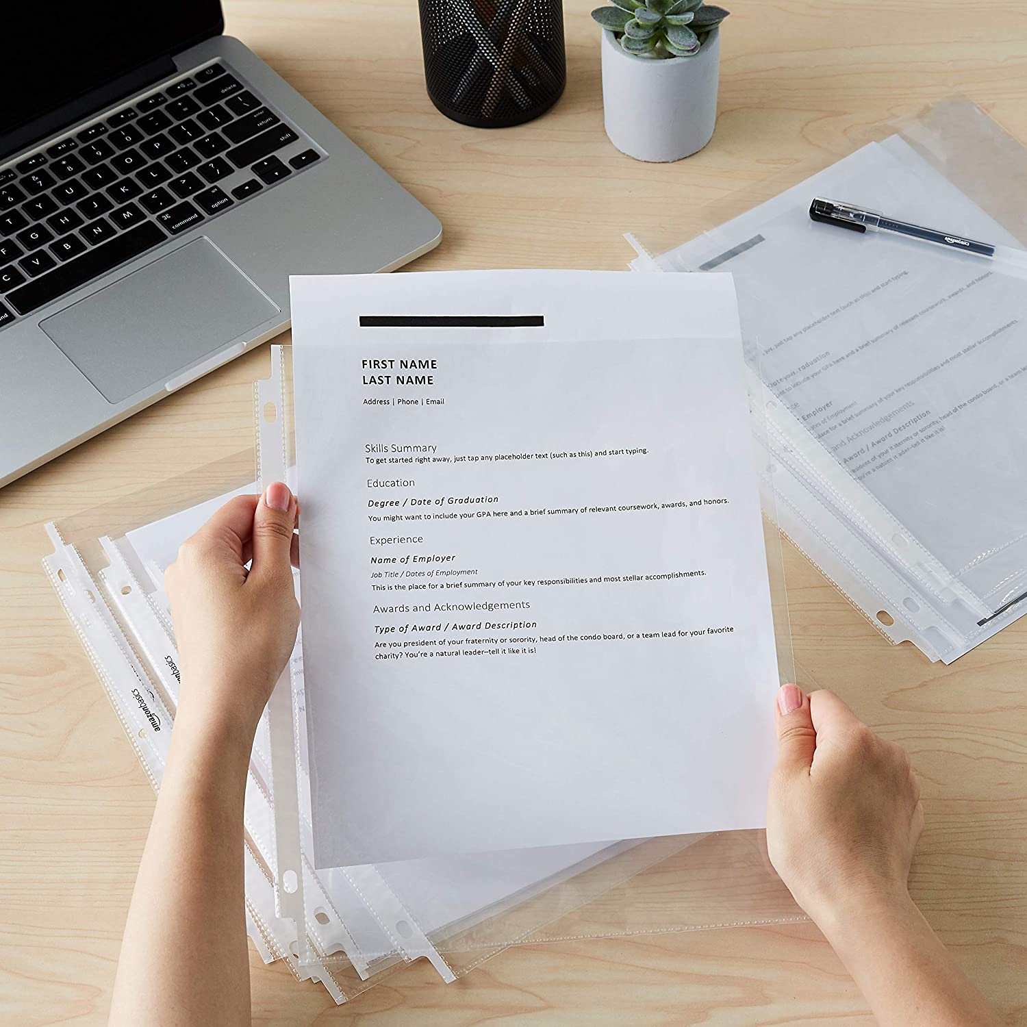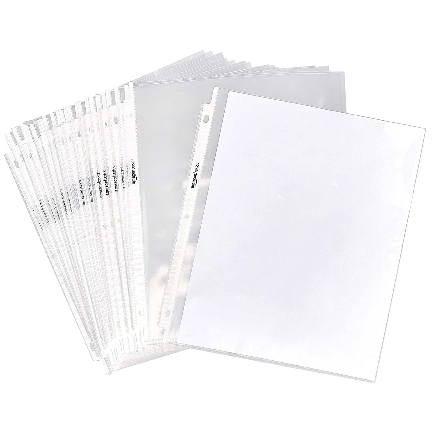 Amazon Basics – Protector de hojas transparente para carpeta de 3 anillas, 8.5 x 11 pulgadas, paquete de 100